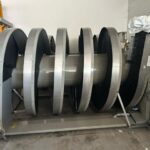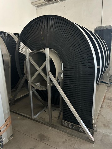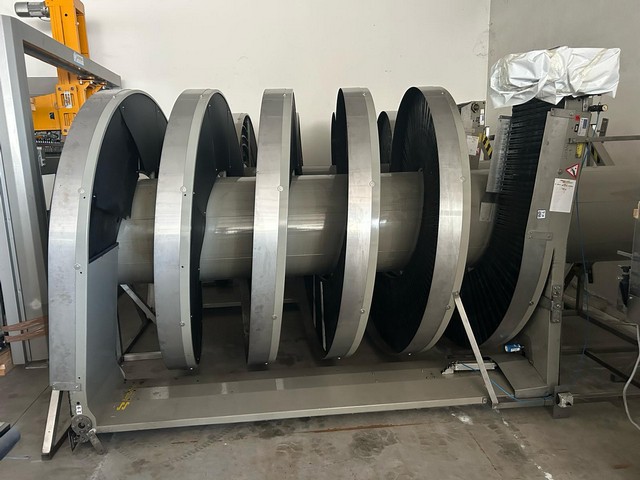 Elevatore e discensore usato per fardelli/scatole Ambaflex del 2004, modello SV-600-1600. L'altezza di entrata/uscita per l'elevatore è di circa 3000 mm, mentre per il discensore è di circa 3200 mm. Entrambi sono dotati di un diametro di 2300 mm e una larghezza della catena di 600 mm. Queste caratteristiche lo rendono adatto per la movimentazione di fardelli e scatole in diverse situazioni industriali.
