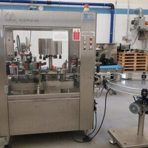 Etichettatrice P.E. Labeller Master M/S 5.400 bph Usato del 2014. Questo modello è progettato per raggiungere una produzione oraria di 5.400 bph. La macchina presenta un senso di rotazione orario e dispone di una regolazione della testata elettrica. È equipaggiata con 6 piattelli e una movimentazione dei piattelli a camma meccanica, garantendo un funzionamento fluido ed efficiente.