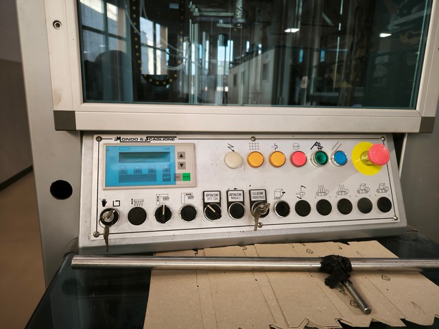 Inseritore di alveari Mondo&Scaglioni 600 cph Usato del 2000. Questa macchina è progettata per la produzione di 600 cartoni vuoti o pieni all'ora. È dotata di una testa, adatta per l'inserimento di alveari in diverse tipologie di cartone. La macchina è inoltre fornita di protezioni antinfortunistiche per garantire la sicurezza durante il funzionamento.