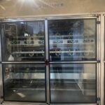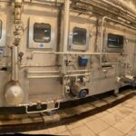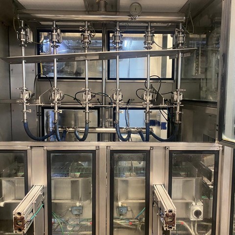 Il detappatore è dotato di un sistema di sicurezza con protezioni antinfortunistiche per garantire un ambiente di lavoro sicuro. Il sistema include un lavabottiglie macero realizzato interamente in acciaio, con una configurazione a 6 file e 23 stazioni di lavaggio per un’efficace pulizia delle bottiglie prima del riempimento.