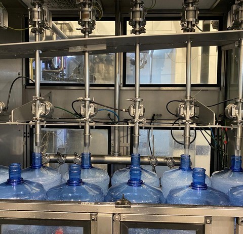 La riempitrice è dotata di 6 valvole con flussimetro che assicurano un riempimento preciso e veloce. Il tappatore, che include un elevatore tappi, opera con un sistema monotesta e può lavorare con tappi in plastica a pressione con una misura di Ø 55 mm. Il sistema di distribuzione è progettato per la presa al volo, ottimizzando ulteriormente l'efficienza della linea di imottigliamento.