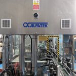 Il Monoblocco Alfatek TBC 12.6.15.1C è dotato di una sciacquatrice con 12 pinze, un ugello fisso e un singolo trattamento con acqua. La macchina include anche una stazione deox con 6 teste per la rimozione dell'ossigeno.