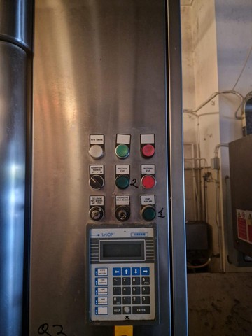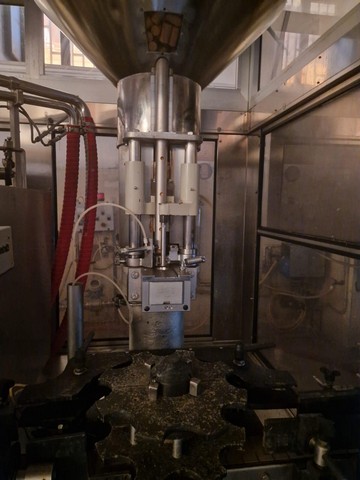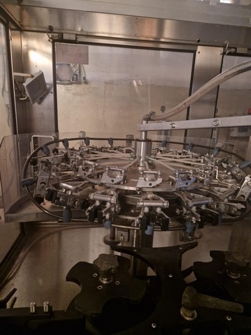 Monoblocco Bertolaso 16.20.1 Isobarico 2.000 bph Usato del 1998, progettato per la produzione di bevande con un'ora di produzione di 2.000 bph. Questo modello, noto come Uniblock 16.20.1, è dotato di una sciacquatrice con 16 pinze e ugello fisso, che permette un singolo trattamento. La riempitrice ha 20 valvole con valvola meccanica per un'accurata gestione del riempimento. È presente anche un tappatore monotesta, compatibile con tappi in sughero raso e fungo. Il sistema di microfiltrazione è incluso e garantisce una qualità del prodotto finale. Il PLC Siemens S7 assicura un controllo efficiente delle operazioni. Inoltre, la macchina è equipaggiata con protezioni antinfortunistiche per garantire la sicurezza durante il funzionamento.