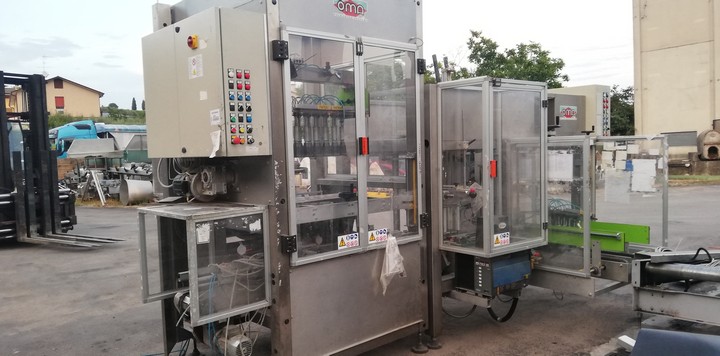 Monoblocco di incartonamento usato OMA del 2007 è una macchina progettata per il processo di incartonamento. È in grado di raggiungere una produzione oraria di 800 cph, con una velocità variabile tra 300 e 800 cph. Questo incartonatrice è dotata di 2 teste e 6 prese fisse per testa, utilizzando una tipologia di presa fissa. È compatibile con formati di cartone 3×2 e 3×4, consentendo una flessibilità nelle dimensioni degli imballaggi. La chiusura sotto avviene tramite colla a caldo del marchio Nordson, mentre la chiusura superiore utilizza anch'essa colla a caldo Nordson. Inoltre, la macchina è dotata di una chiudicartoni siat e offre un funzionamento automatico, garantendo un'efficienza nel processo di incartonamento. Infine, sono presenti protezioni antinfortunistiche per garantire un ambiente di lavoro sicuro.