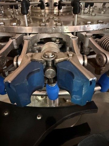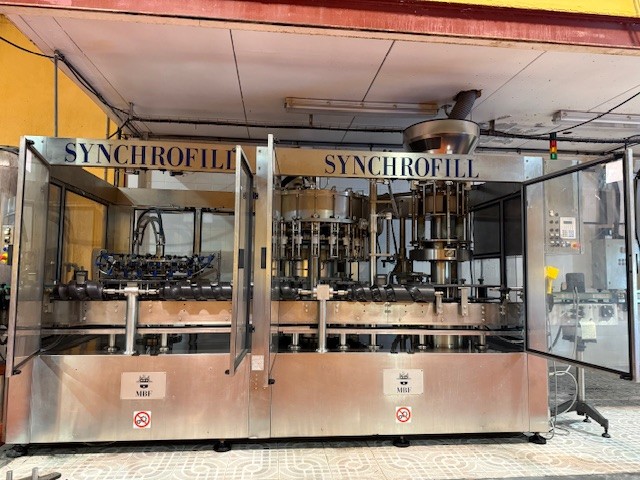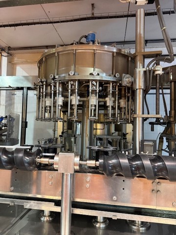 Monoblocco di riempimento MBF 20.20.4 Usato del produttore MBF, costruito nel 2000, è una macchina progettata per la lavorazione di bottiglie di vetro. Questa macchina offre una capacità di produzione oraria di 6.000 bph.