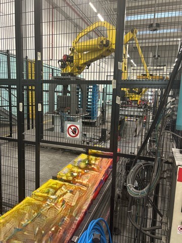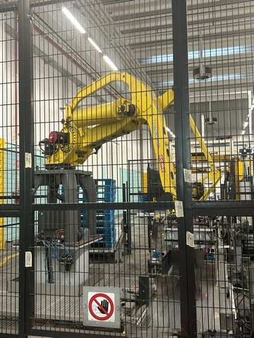 Palletizzatore Ocme Pegaus 160 M Usato del 2011, progettato per l'uso industriale, adatto a pallettizzare cartoni. Questo modello, PEGASUS 160 M, raggiunge una velocità di circa 1.5 strati al minuto. Dispone di un sistema a pinza e integra un magazzino pallet per una gestione efficiente. È dotato di protezioni antinfortunistiche per garantire la sicurezza durante il funzionamento.
