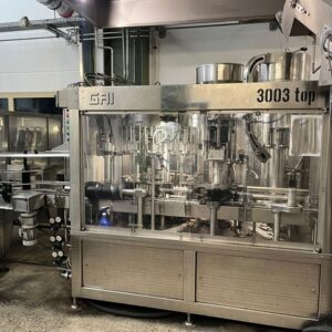 Riempitrice Tappatore Bertolaso 40.6 Usato è una macchina del 1996, prodotta dal marchio Bertolaso, progettata per il riempimento e la tappatura di bottiglie con un'alta capacità produttiva di 8.000 bph. Questa macchina è dotata di un sistema di riempimento a leggera depressione e presenta 40 valvole meccaniche, che garantiscono un funzionamento efficiente.